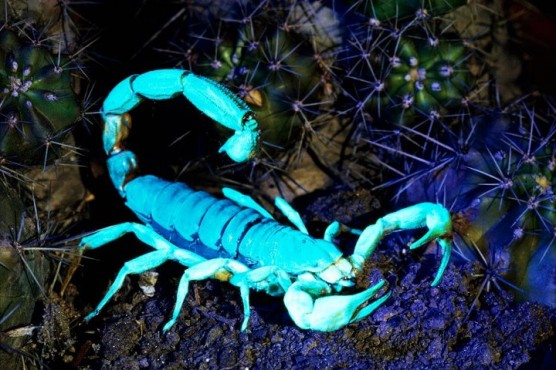 صورة حقيقية لعقرب أريزونا الفسفوري المشع، والذي يتوهج أسفل الأشعة فوق البنفسجية. مأخوذة من سلسلة ناشونال جيوغرافيك الوثائقية “مشاهد مذهلة”.